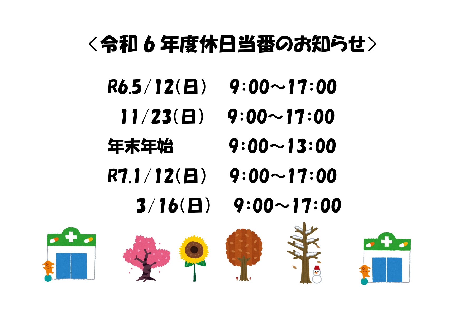 令和6年度休日当番のお知らせ(^^)/